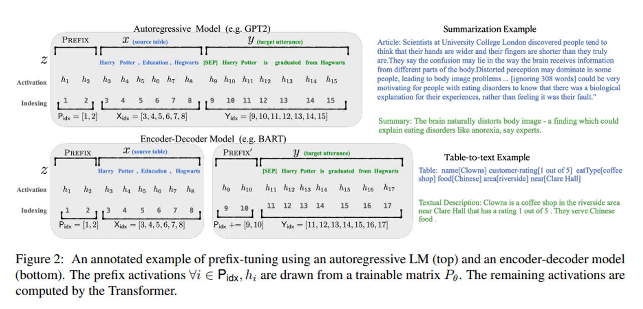 ** 이거 말고 “prefix tuning” 은 : Prefix-Tuning: Optimizing Continuous Prompts for Generation → 위의 prefix-tuning 은 이 논문의 방법론을 다른 task 에 적용한 것이다.