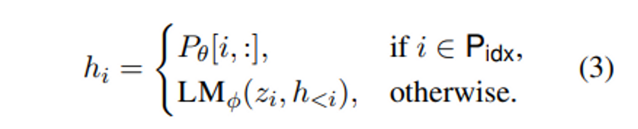 i ∈ P_idx 일때 h_i 는 P_θ 에서 바로 카피해오기 때문에 간단한데,