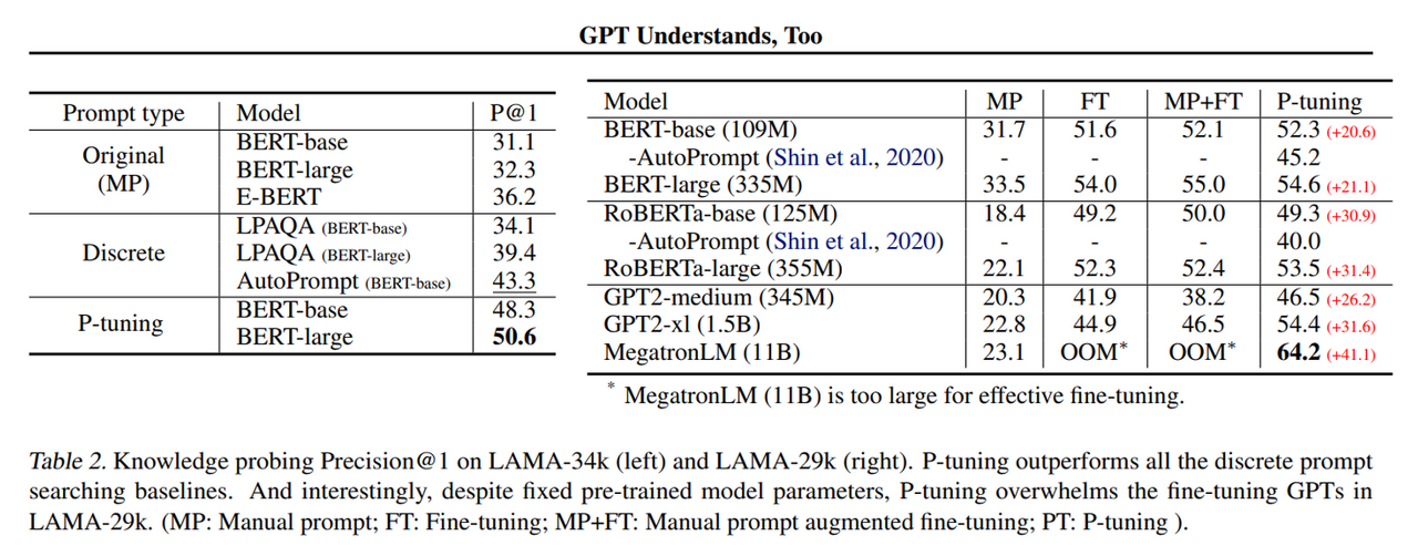 - P-Tuning(2103): GPT Understands, Too