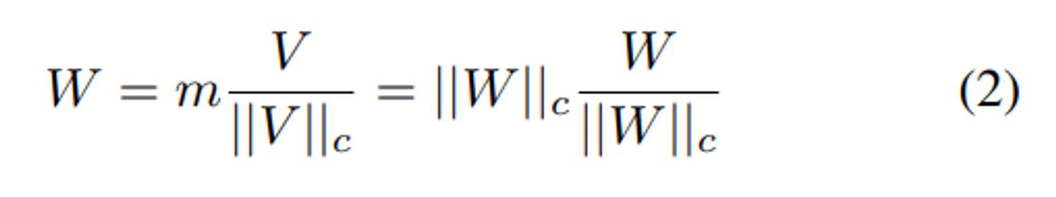 초기화 이후 magnitude $m = ||W_0||_c$ , directional matrix $V = W_0$ 이다.