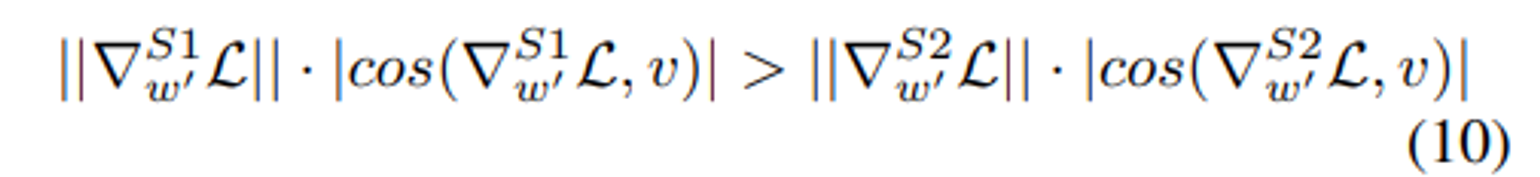 S1 과 S2 에 대해 $||∆w_{S1}|| = ||∆w_{S2}||$ 과 $||∇^{S1}_{w′}L|| = ||∇^{S2}_{w′}L||$ 가 같이 주어지면