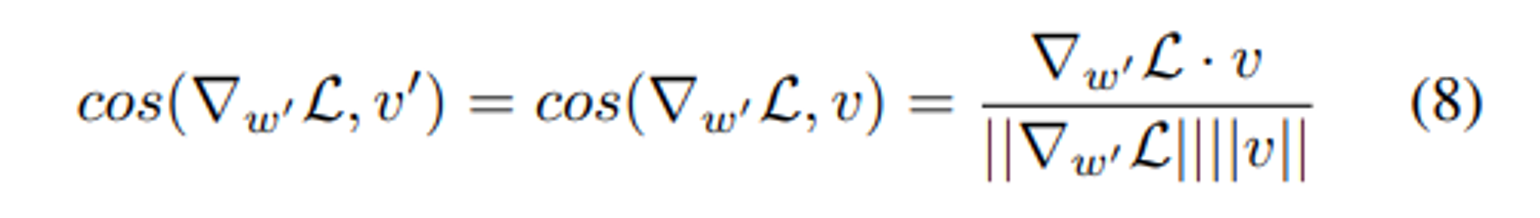 $|cos(∇_{w′}L, w′)| = |cos(∇_{w′}L, v′)| =|cos(∇_{w′}L, v)|$ 이다.